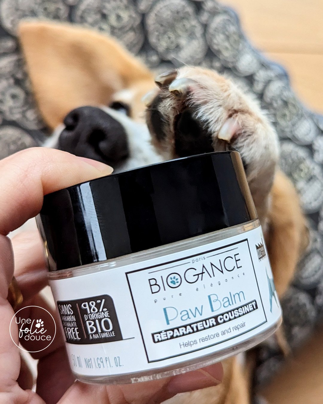 Baume naturel réparateur des coussinets de la marque FRANÇAISE BIOGANCE.