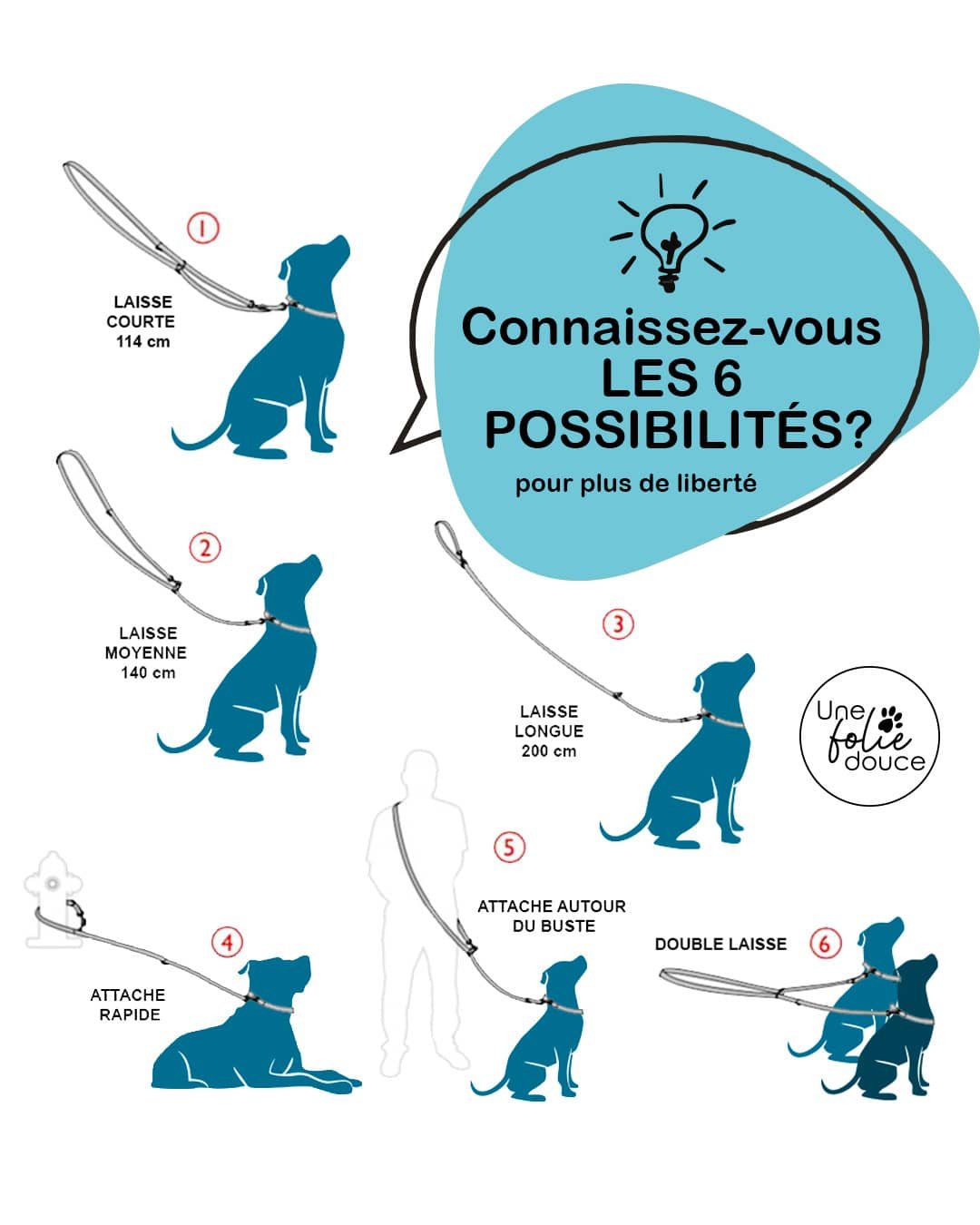 👉 Une seule laisse suffit pour une utilisation optimale, quelle que soit la situation.